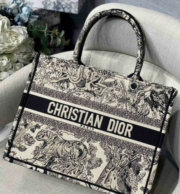• Book Tote Black Toile De Jouy With OG Box & Dust Bag & Scarf (Black Tiger - 573)