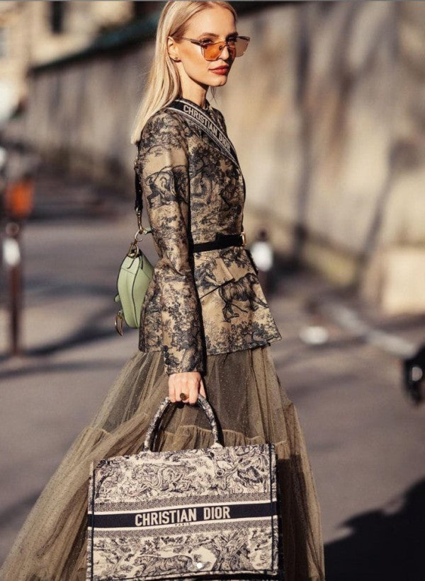 Book Tote Black Toile De Jouy With OG Box & Dust Bag & Scarf (Black Tiger - 573)