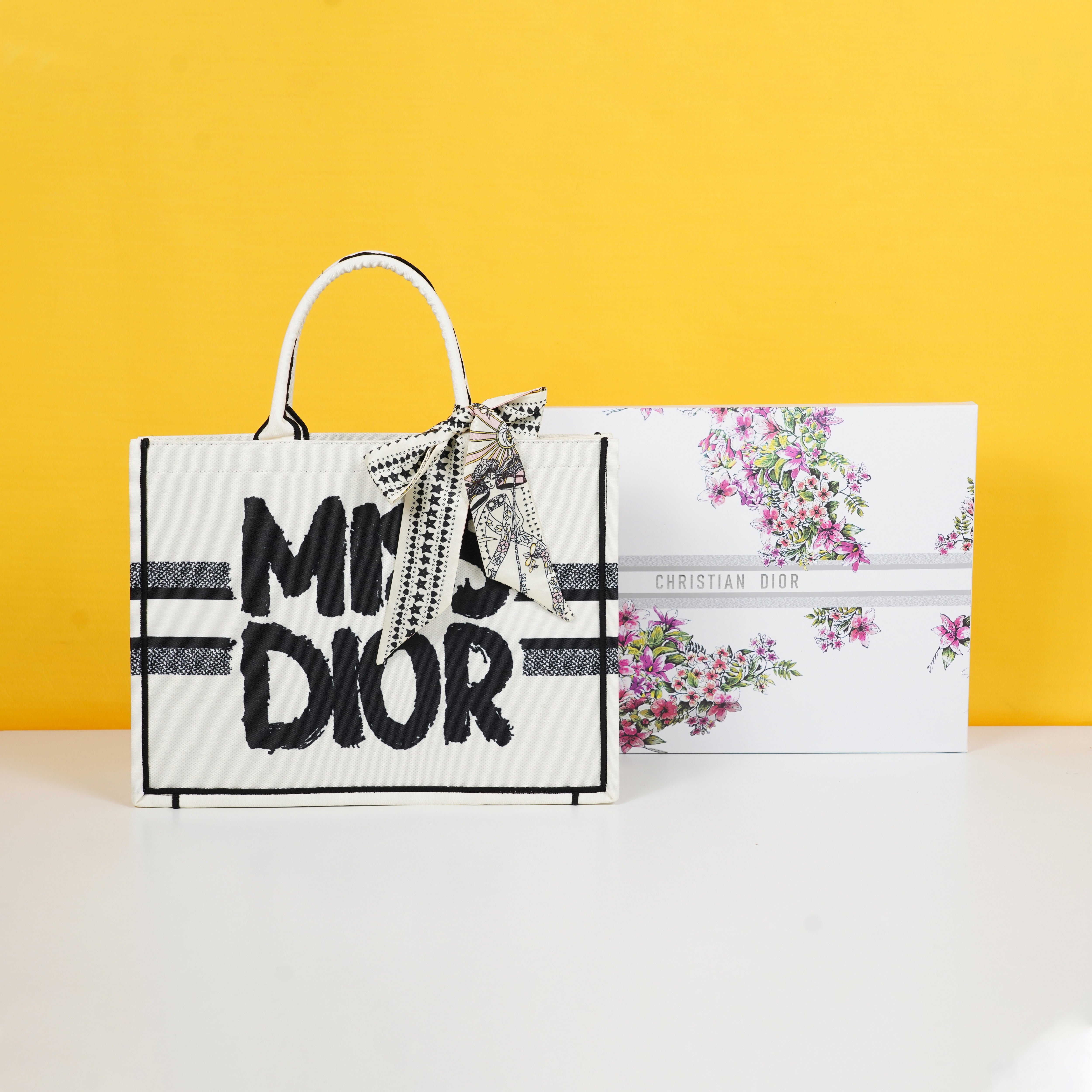 Miss D Book Tote With OG Box & Dust Bag & Scarf (White - 1028)